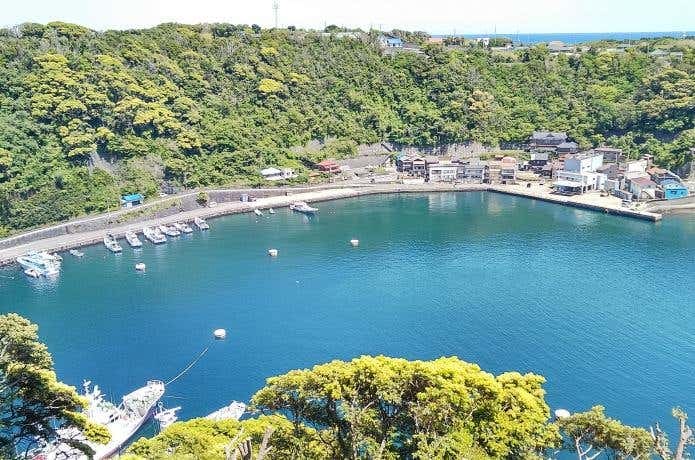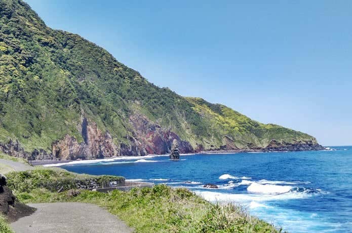 地層大切断面以外にも、景勝地として知られる波浮港や登山口までの海と山の景色を見られるのがサイクリングのよさです。