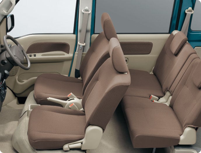 この荷室は、助手席を前倒ししてフラットにできる機構や分割可倒式リヤシートにより、荷物の大きさや人数に合わせた柔軟な使い方も可能です。