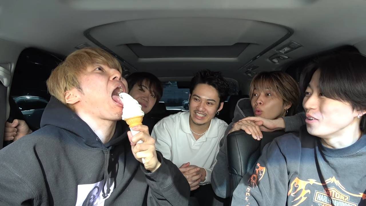 ソフトクリームをなめ上げたあむぎりは、「しゃぁぁ!」とガッツポーズして喜びを爆発させました。メンバーからは祝福を受けますが、慣れていないせいか大口を開ける形になっており、「顔気を付けろって」とツッコまれてしまいます。