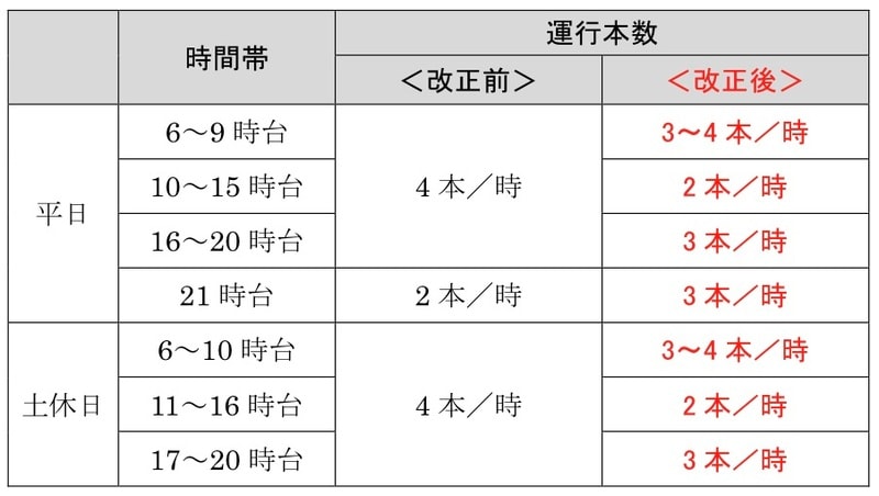 効率化の一環として、ワンマン運転区間の拡大や運行本数の見直しも行われます。