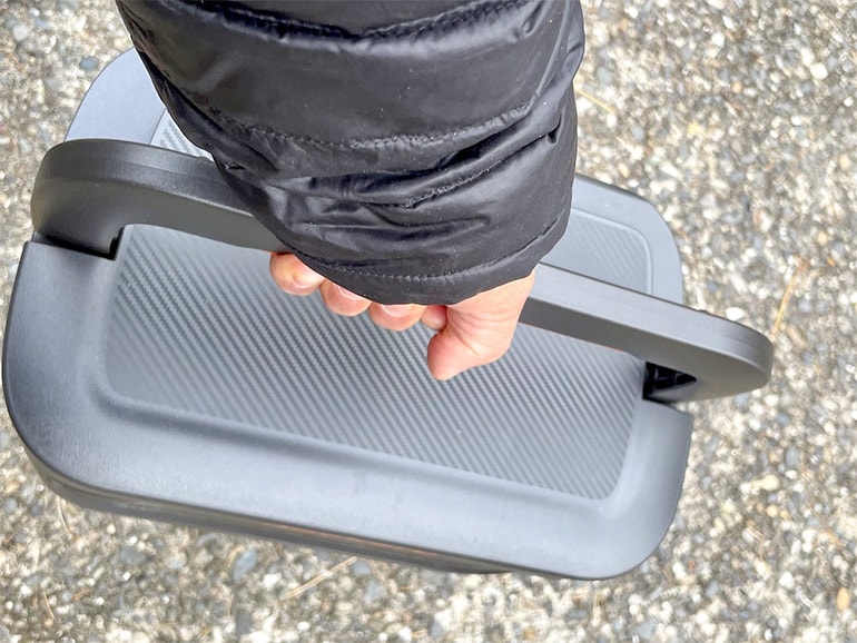 大きくしっかりしたハンドルは両手で持つこともできるが、特に女性にとっては厳しいと感じる人が多そうだ。