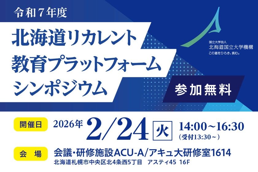 国立大学法人 北海道国立大学機構、北海道リカレント教育プラットフォーム シンポジウムが、社会人の学習継続難問の解決をテーマに話題提供する場として2026年2月24日(火)に実施されます。