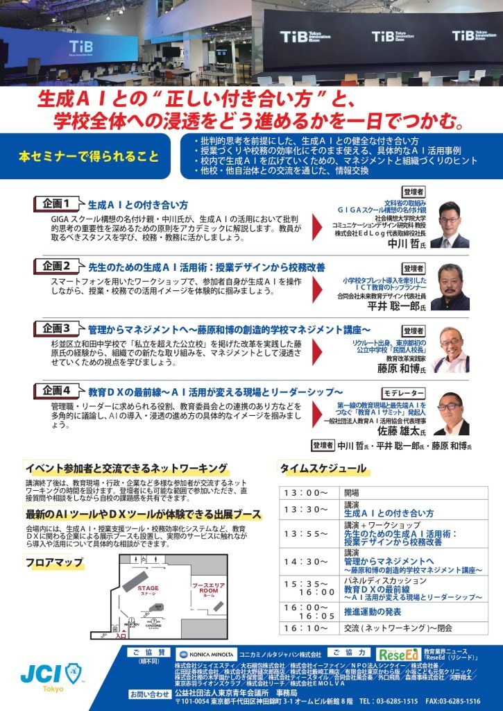 終盤には行政・学校・企業の垣根を越えた交流会も開催する。東京青年会議所は、「生成AIを“恐れる対象”から“教育の質を高めるパートナー”へと変えて未来の学びを共に実装してほしい」と、参加を呼び掛けている。希望者は参加フォームから申し込む。