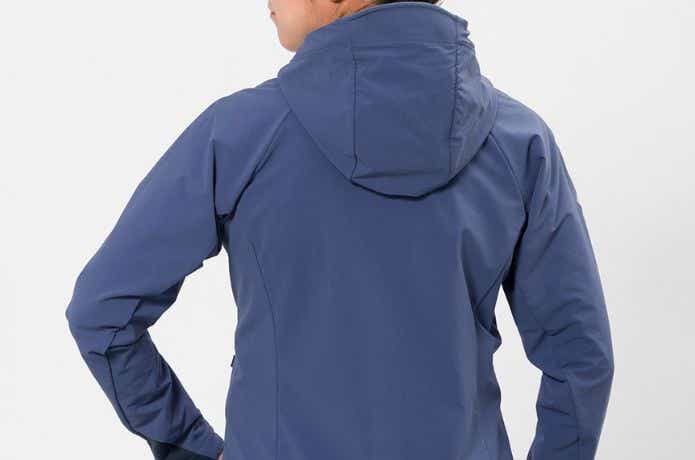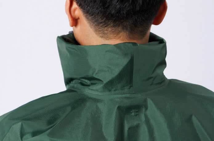 フードは使わないときに襟裏のループとベルクロでまとめられる仕様。厚手の中間着の上からも羽織りやすい、ややゆとりのあるシルエットで、裾のドローコードによりフィット感やシルエットの調整も可能です。