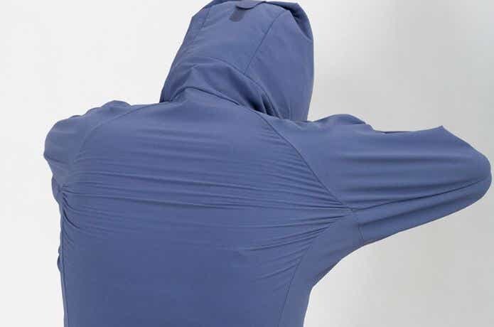世界最高レベルの超軽量・極薄素材「7デニール バリスティック エアライト」を使用したウインドシェル。
