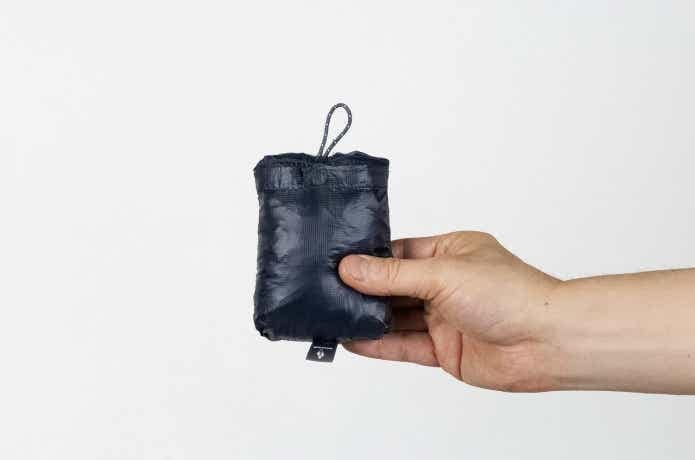 ポケッタブル仕様で、収納時は手のひらに収まるほどのコンパクトさを実現。軽量化を徹底するためポケットは1つのみで、シルエットもややタイトめになっています。無駄のないシンプルな構造ながら、脇にはベンチレーションを備えており、軽さと快適さを両立しているのもポイントです。