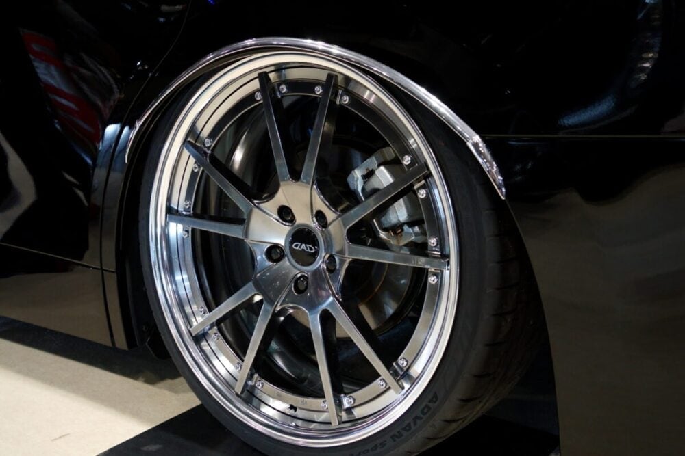 多角的な商品展開を通じて、オーナーのアイデンティティを全方位から刺激するD.A.D。2026年の東京オートサロンでは、アルファードの足元に新作ホイール「GLANCLAW」を初披露した。