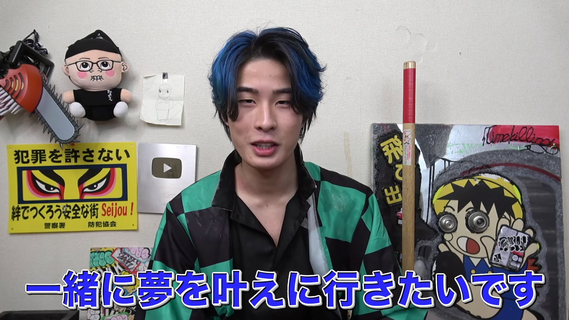 今までは何者でもない18歳が夢を叶えるっていうのを視聴者のみんなに見てほしかった。でも次は日本のYouTuberたちに夢を見せます。俺ら日本のYouTuberが世界にも通用するってみんなで日本全体で一致団結して一緒に夢を叶いに行きたいです