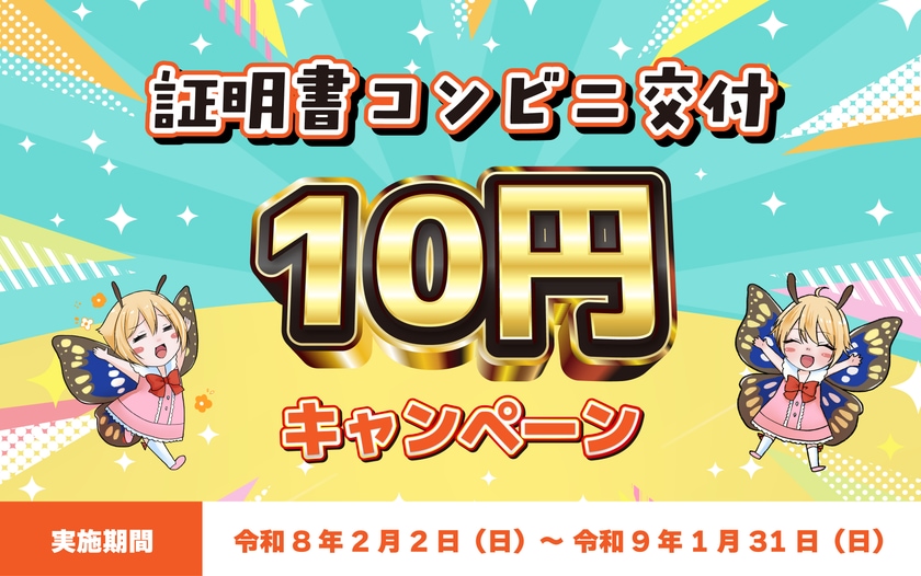 下妻市では、2022年2月2日から2023年1月31日までの1年間、証明書コンビニ交付サービスの発行手数料を1通一律10円にするキャンペーンを行います。対象となる証明書は、住民票謄本・抄本、印鑑登録証明書、戸籍全部事項証明書(戸籍謄本)、戸籍個人事項証明書(戸籍抄本)、戸籍附票謄本・抄本、課税証明書、所得証明書となります。但し、戸籍謄本・抄本および戸籍附票謄本・抄本は、本籍が下妻市の方のみが対象となります。キャンペーン期間中に、このコンビニ交付サービスを利用することで、手数料を節約することが可能です。(詳細URL:https://www.city.shimotsuma.lg.jp)