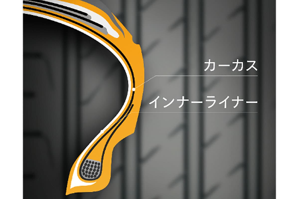 低ヒステリシス素材をカーカス部とインナーライナーに採用することで、エネルギー損失を抑制し、転がり抵抗を低減。その結果、燃費向上やEVの航続距離延長を実現しながら、耐久性や剛性を損なうことなく高い走行性能を実現している。