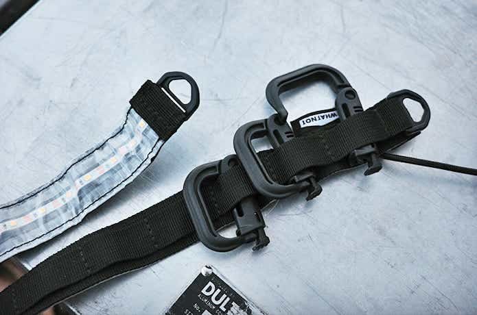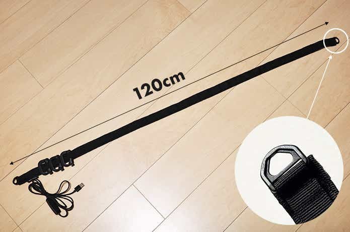 ハンギングテープライトは長さ約120cmで、長さの調整機能などはありません。両端に取り付けに便利なDカンパーツも付いているので、汎用性はかなり高そうです。