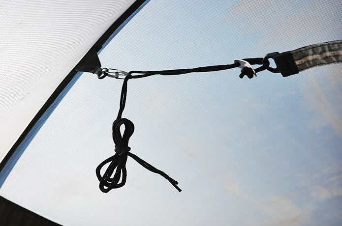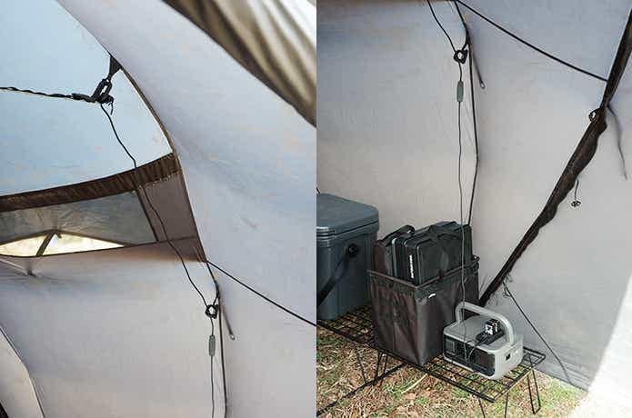 実際にテントへ取り付けてみると、設置場所によっては長さの調整がやや難しいと感じました。