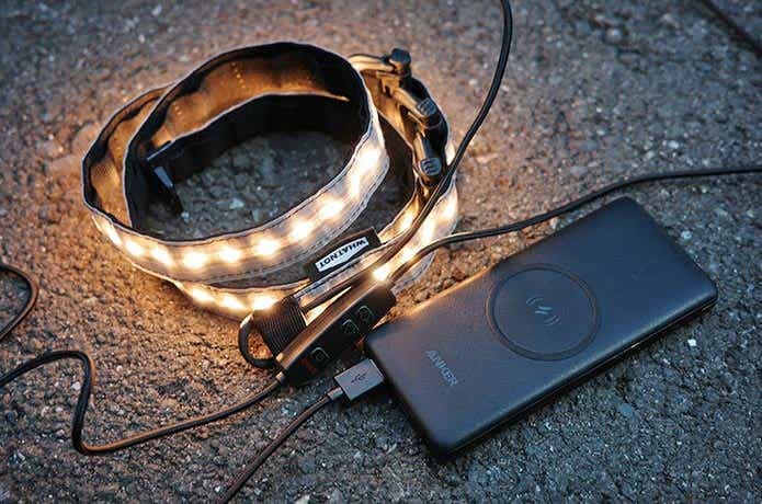 電源に使用したのは10,000mAhのAnker製モバイルバッテリー。この日は薄暗くなった16:30頃に点灯開始しましたが、最大光量で約5時間点灯してバッテリー残量は1/4程度でした。