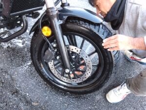 自分のバイクでもないのに精魂込めてフキフキ。noddyを誘って正解である……。