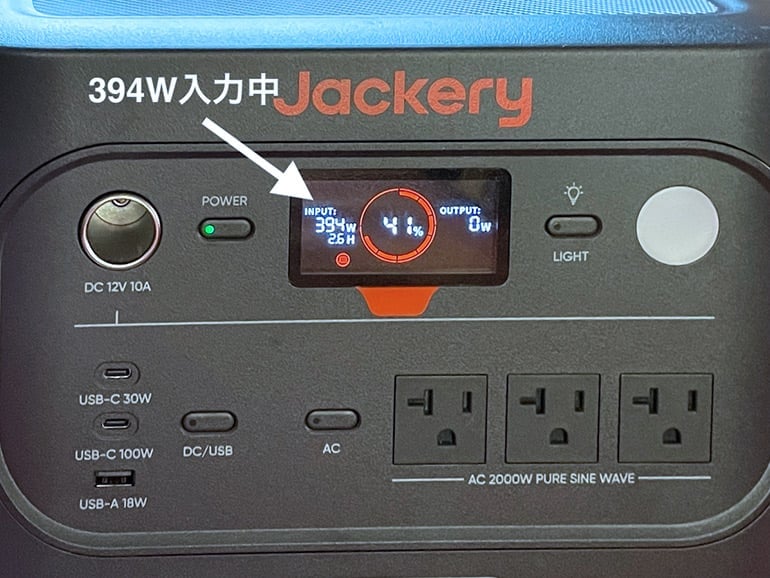 装着したJackery Drive Charger 600Wは、先述の通り最大600Wの電力をポータブル電源に供給できる性能を持っている。