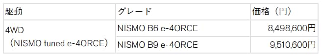 「日産アリアNISMO」全国希望小売価格(消費税込み)