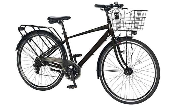 電動アシスト付きのカゴ付きクロスバイク。スーツスタイルで乗っても違和感がないスタイリッシュなデザインが特徴です。