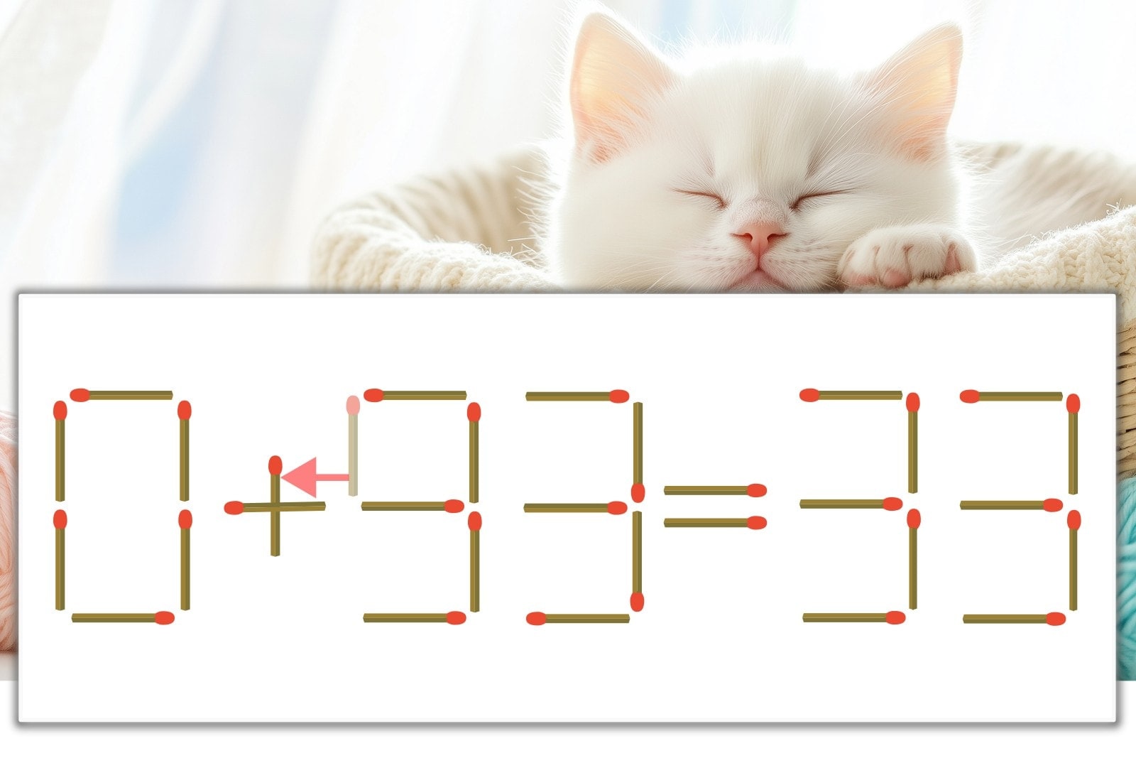 「9」を別の数字に変化させると答えが導き出せます。「9」のマッチ棒を1本移動して、「-」を「+」にしてみましょう。すると、「0+33=33」が成立します。