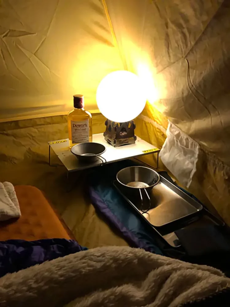 ほどよく酔った後はあったかいシュラフに潜り込み、ウトウトと幸せな眠りにつきましょう。zzz…