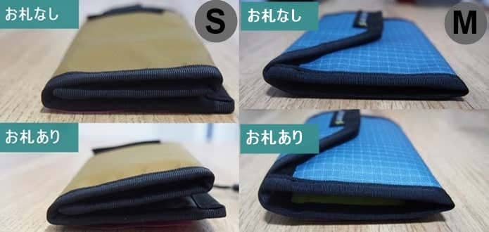 またお札の折り目が、トレイルバンクSだと三つ折りに、トレイルバンクMだと二つ折りになる、といった違いもあります。