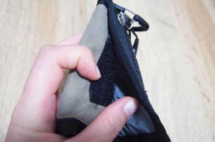 開口部のベルクロを引き剥がす際に、バリバリ音は当然鳴ります。ただベルクロがあることで、不用意に財布が開いて中身が飛び出してしまうリスクを防いでいます。