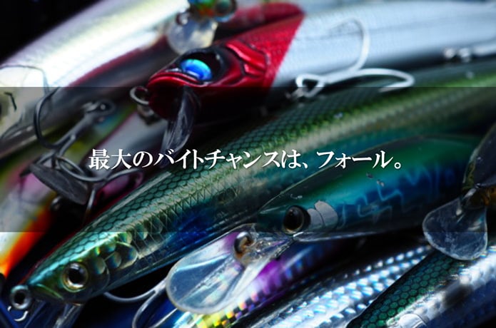 速いスピードで誘って一瞬だけ落としたり、長いフォールでじっくりとルアーを見せたり、1キャストの中でもさまざまなフォールを駆使してください。
