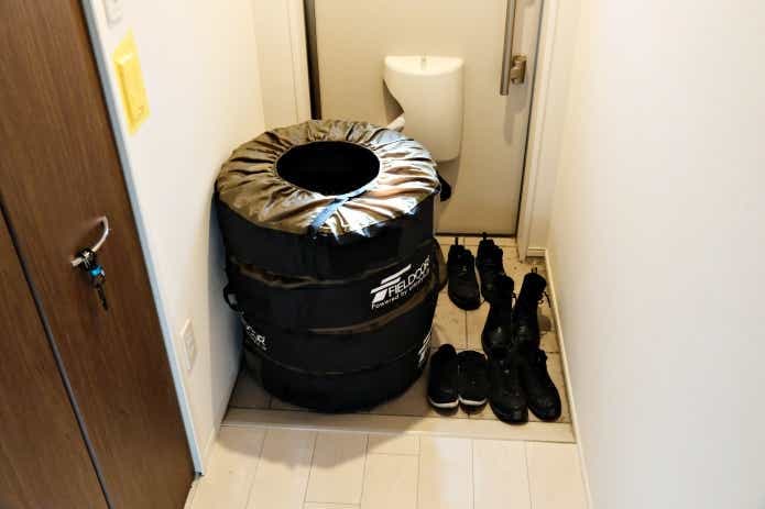 玄関スペースの半分以上を占領していたスタッドレスタイヤ
