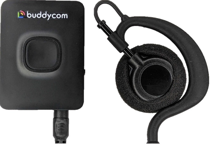 例えば最初にバディコムを使ってくれた航空会社JAL(東京都品川区)の整備士の方々は、屋外の飛行機のエンジンの下などで、バディコムを使って整備士同士で会話して整備を進めています。バディコム機器の操作は簡単でボタンを押すだけで簡単に現場の全員と会話できます。JALの整備士は屋外で使うので、イヤホンとマイクの弊社機器は雨に強い仕様にしています。ホテルなどでは、イヤホンとマイクが一つになった耳掛けタイプの「ヘッドセット」を着けて、接客に必要な会話などをしています。このヘッドセットは見た目も重視したスタイリッシュなデザインに仕上げています。また介護現場では会話が不自由なお年寄りの呼び掛けを正確に聞き取る必要があるので、耳をふさがない形の弊社の高音質軟骨伝導ヘッドセットを使っていただいています。
