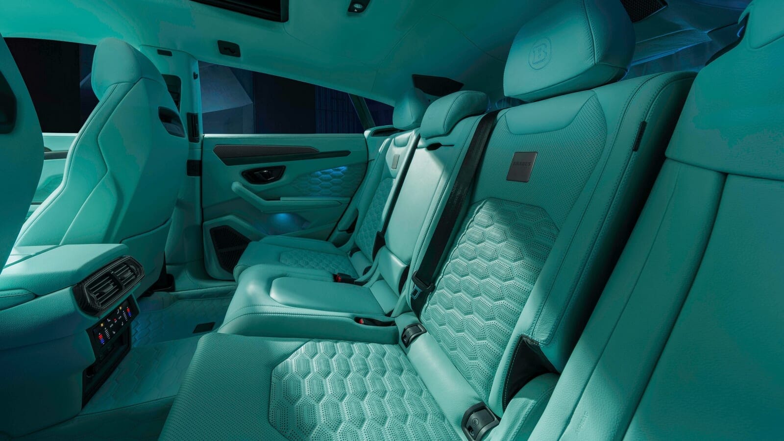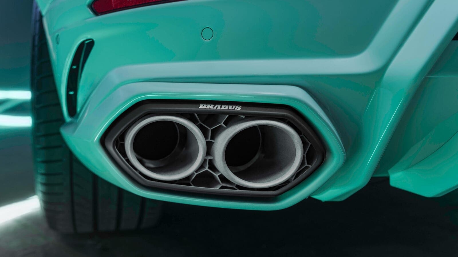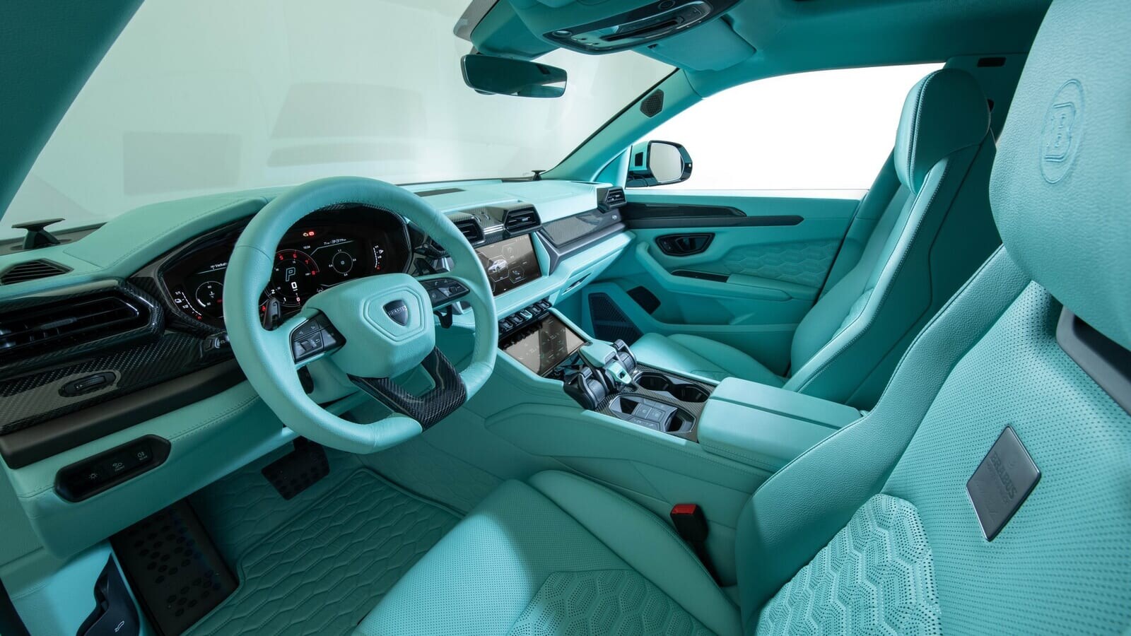 「ブラバス スポーツエキストラ」モジュールと呼ばれるものをプラグインすることで、エアサスペンションの車高を最大20mm下げることもできるそうだ。そして、巨大化されたアーチは、怪物のような24インチ鍛造ホイールで満たされている。なんてこった、そのホイールまでもがミント色のペイントで仕上げられているのだ。