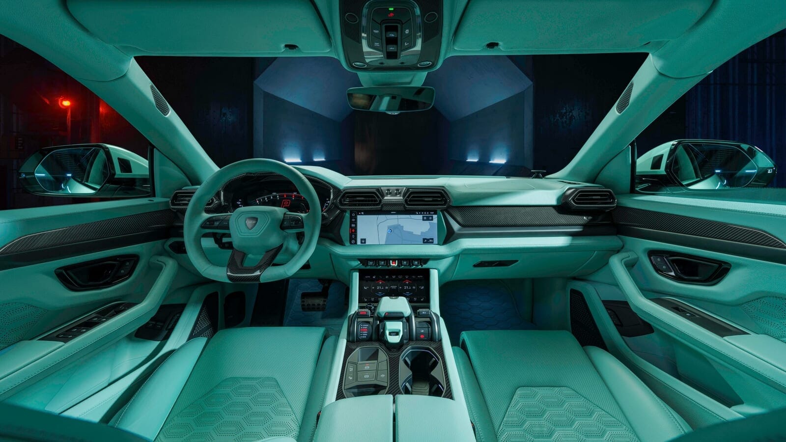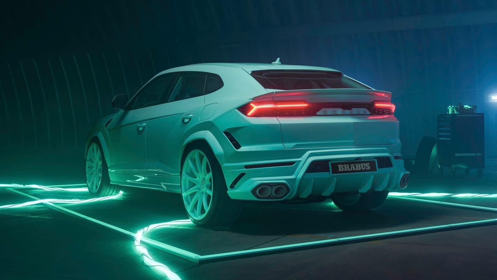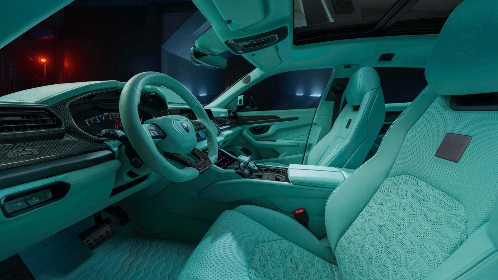 「ブラバス スポーツエキストラ」モジュールと呼ばれるものをプラグインすることで、エアサスペンションの車高を最大20mm下げることもできるそうだ。そして、巨大化されたアーチは、怪物のような24インチ鍛造ホイールで満たされている。なんてこった、そのホイールまでもがミント色のペイントで仕上げられているのだ。