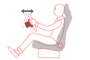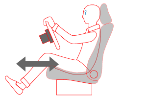 お尻とシートに隙間ができないように深く腰掛け、左足をフットレストに置き、右足がアクセル・ブレーキペダルをいっぱいに踏んだ状態で、膝に少し余裕ができるくらいの位置でシートスライドを前後調整しましょう。