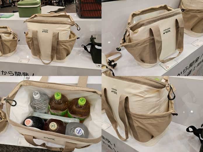 レジかごに収まるサイズや、自転車での買い物を想定した形状など、キャンプ以外の使い道がはっきりしているモデルが揃っていました。