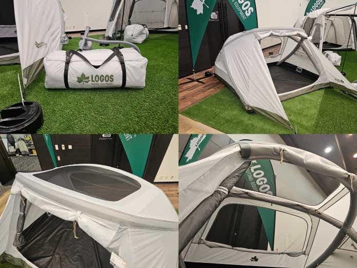 エアーテントの新モデル「エアマジック W クロスドーム M」は、これまでの大型タイプとは違い、比較的コンパクトなサイズ感。