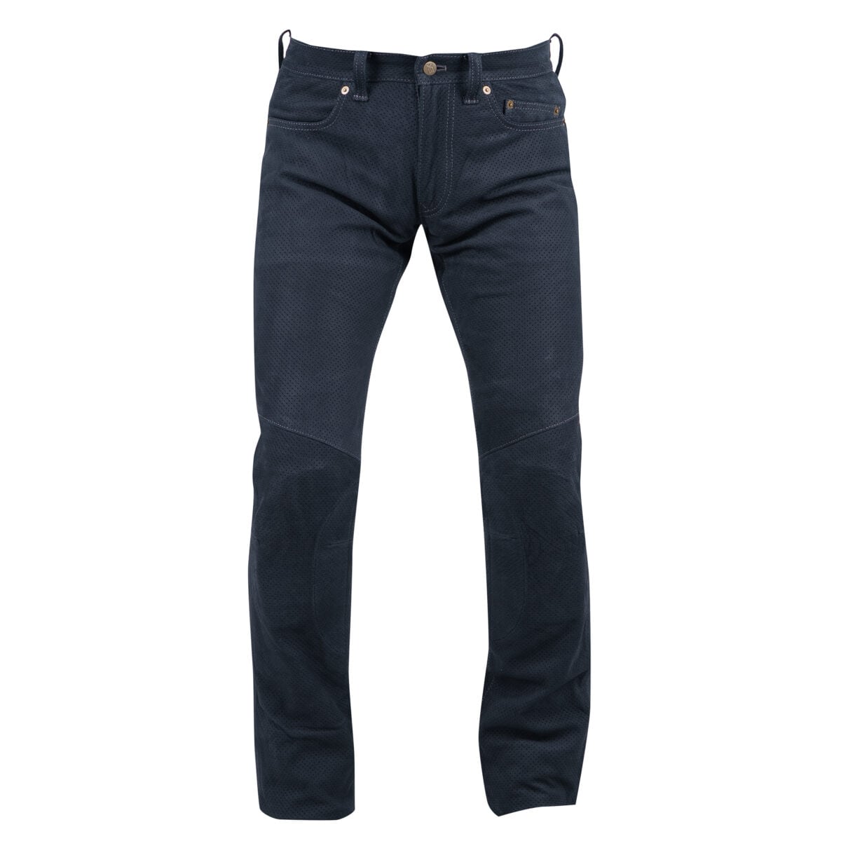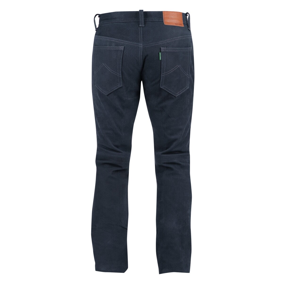 よりライディング向けに、そしてスマートなローライズシルエットが特徴のエクスプローラーライドジーンズのメッシュモデルです。尻部から膝部にかけて車両からの排熱を和らげる目的で本体裏側に当て革を取り付け、当て革と共に輻射熱を反射するアルミ蒸着素材を配しています。裏地にはCOOLMAX®素材を採用しています。