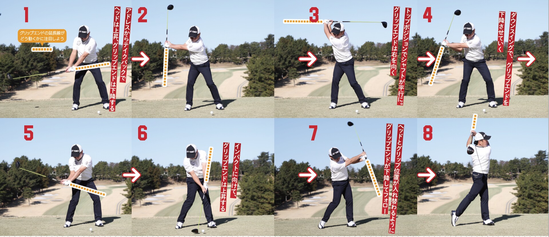 多くのアマチュアゴルファーは、ボールを当てるためにヘッドを動かすことが正解だと思いがちですが、それは勘違い。コントロールするのはグリップエンド。これこそがスイング作りのポイントです。