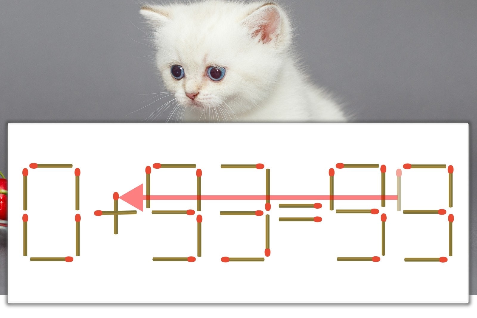 【問題】マッチ棒を1本動かして式を正しくしてください。