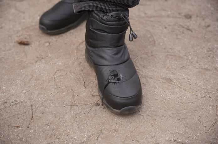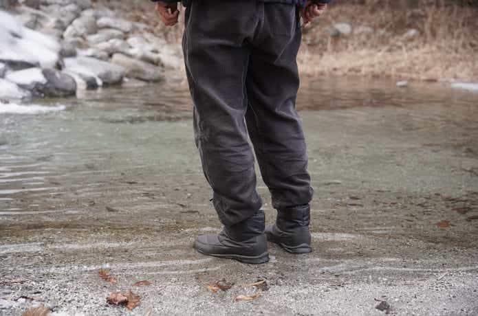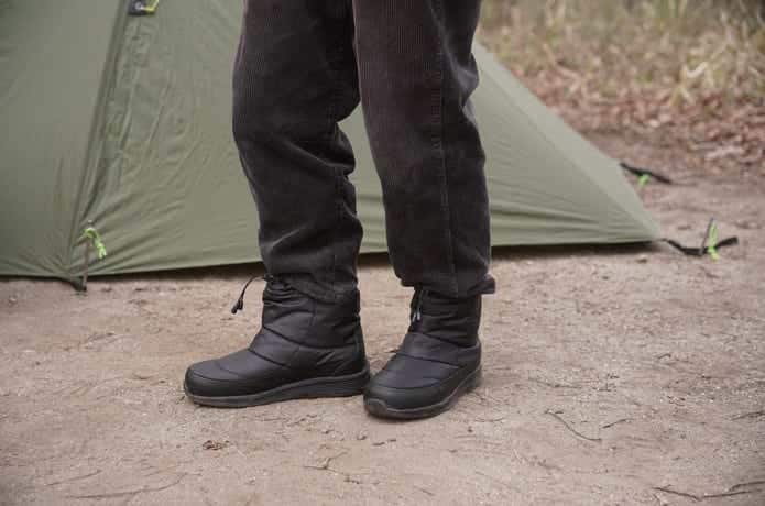 冬キャンプのときにいつも使っている厚手のウールの靴下を履いた状態で、二日間この靴を着用。すると、冷え込みが厳しくなる夜でも足はぬくぬくしていて、寒さを感じることなく充分な防寒性を確認できました。