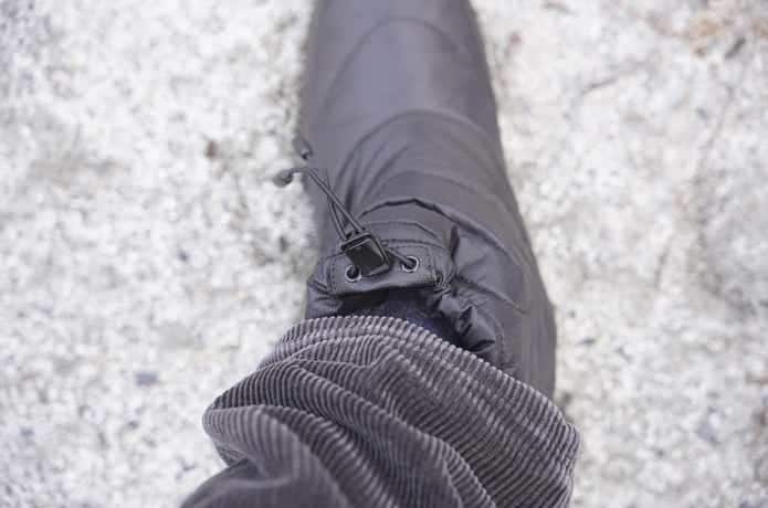 ちなみに足首周りには口を狭めるためのドローコードが付いているので、雪が深いときはドローコードを絞れば雪が入り込むのを軽減してくれます。