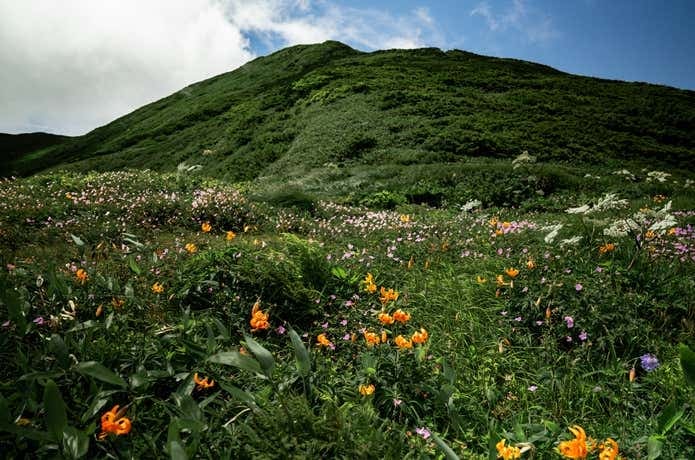 200種類を超える高山植物の宝庫で、クマタカやイヌワシなどの繁殖地があるなど貴重な自然が残されているのが特徴。四季折々にその表情を変え、特に6月下旬~8月中旬は花々が咲き乱れ登山者を魅了します。