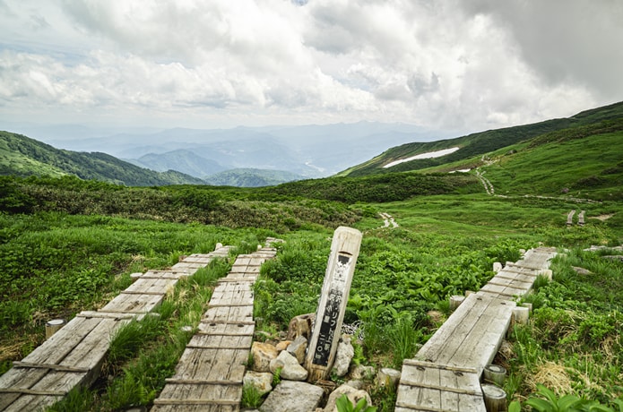 山頂からは佐渡島から岩手山まで、東北の名峰を一望でき、縦走すればさらにその魅力を深く味わえます。