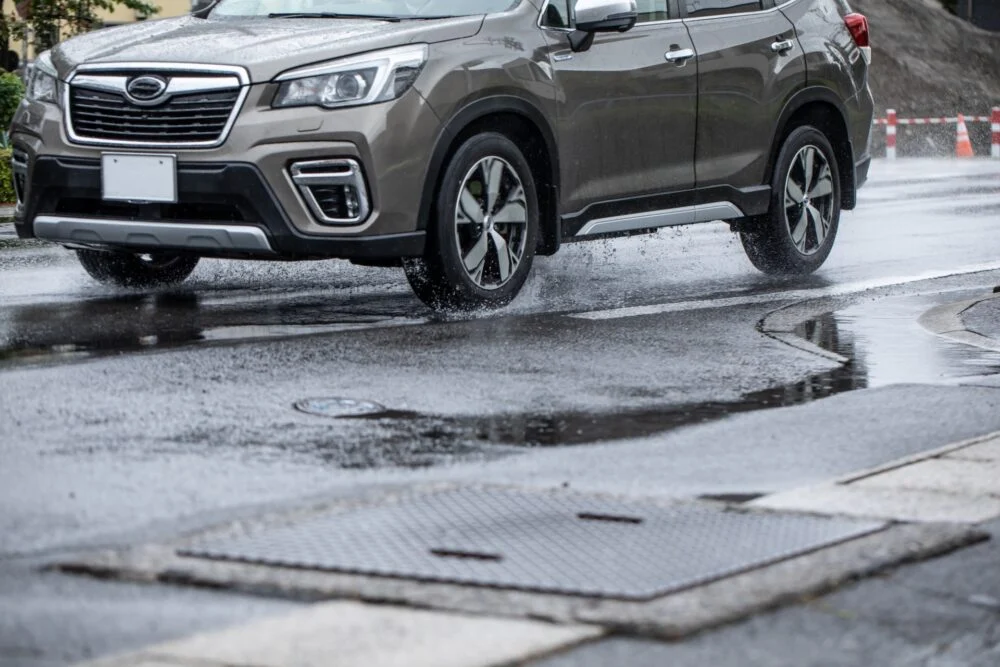 後続車両に合図を送るために、まずはハザードランプを点灯し、周囲に注意を促します。