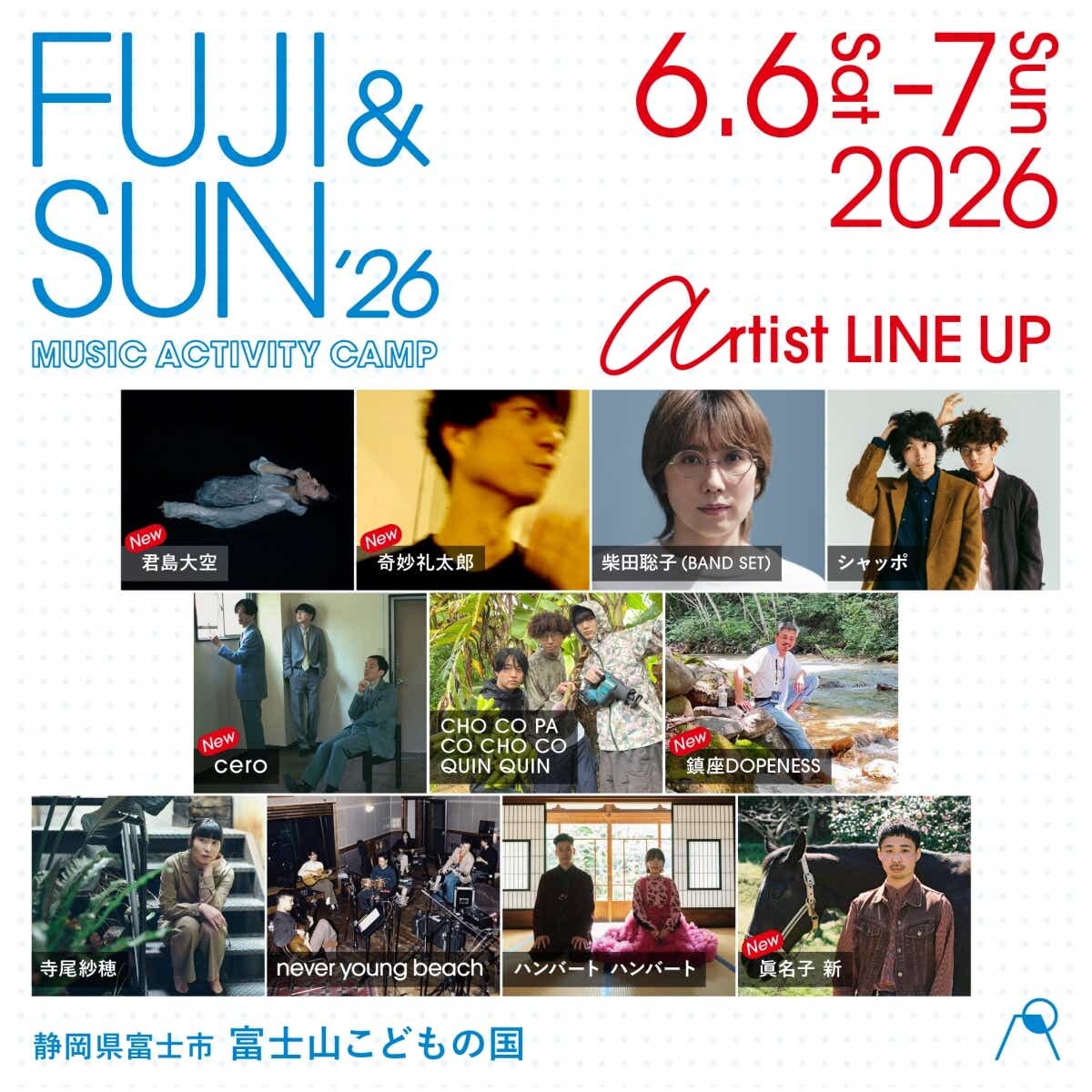 「FUJI & SUN’26」は、静岡県・富士山こどもの国を舞台に開催されるキャンプインフェス。