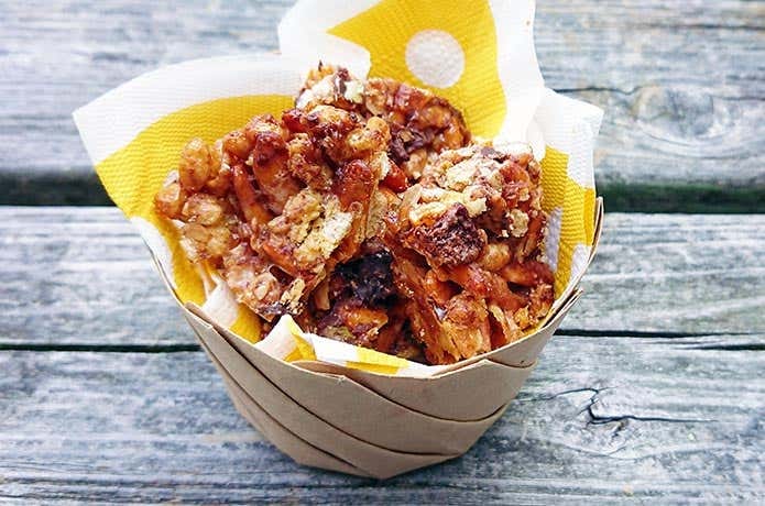 柿の種をラーメンスナックに変えて作るのもおすすめ。こちらは同じく甘じょっぱ系ですが、また食感が変わって楽しめますよ。