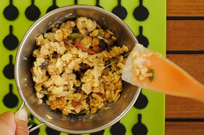 アレンジレシピを紹介する前に、まずは基本のエナジーバーの作り方を紹介します。一見難しそうにも思えますが、我が家の子供(5歳)でも作れるくらいとっても簡単!まずは一度ためしてみてください。