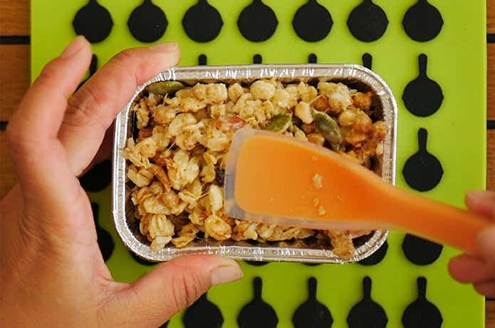 グラノーラは和風エナジーバーと同じくケロッグさんの「フルーツグラノラ」を使用。写真ではピーナッツ抜きの柿の種を使用しましたが、ピーナッツが入っているものでも美味しく作れますよ。