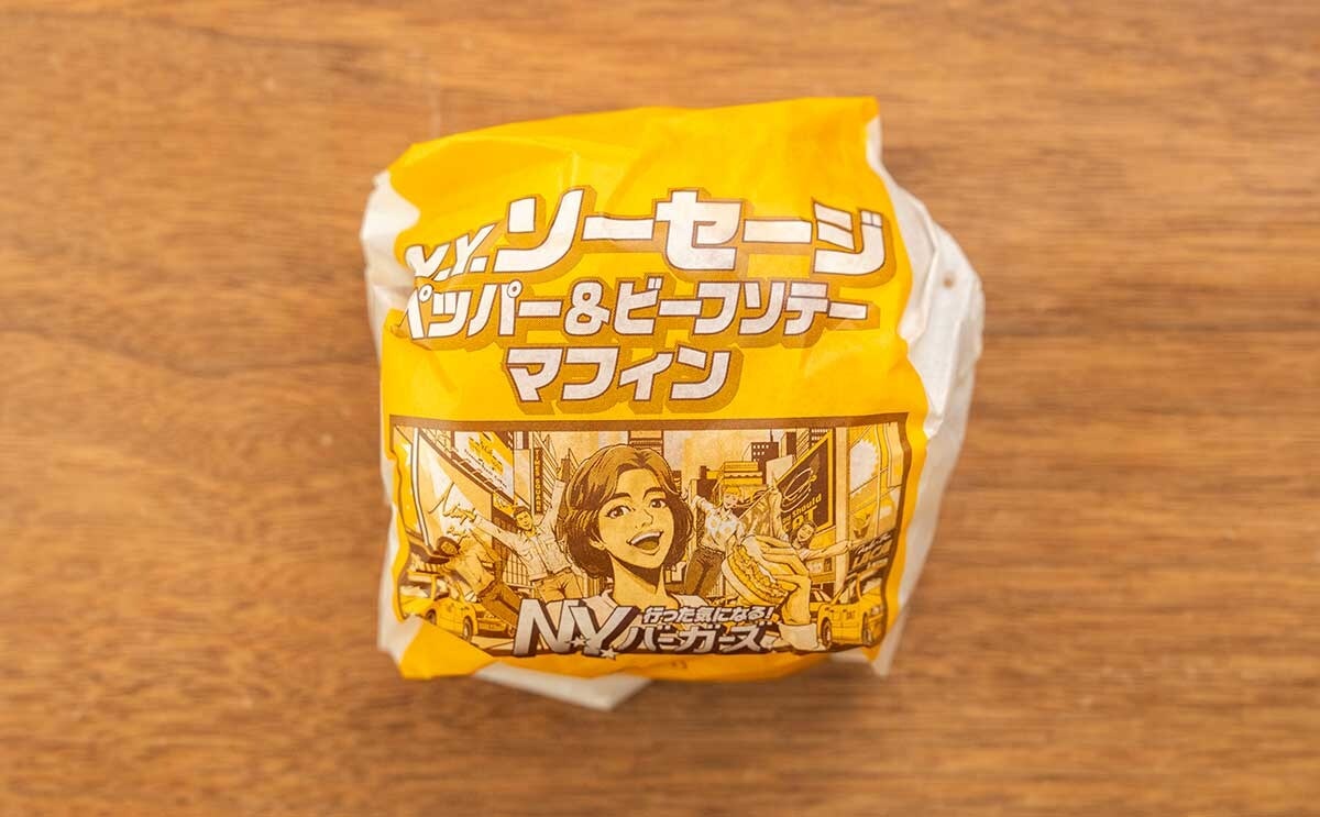 今回はその中から“朝マック”の時間帯に販売されている「N.Y. ソーセージ ペッパー&ビーフソテーマフィン」(単品400円~、バリューセット600円~、コンビ460円~)を詳しく紹介します。