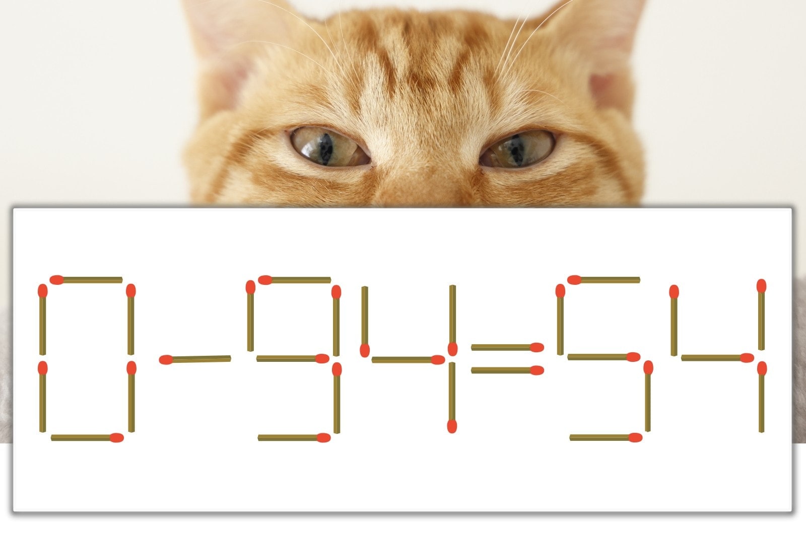 「9」を別の数字に変化させると答えが導き出せます。「9」のマッチ棒を1本移動して、「-」を「+」にしてみましょう。すると、「0+54=54」が成立します。