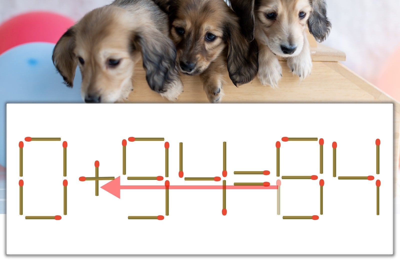 「8」を別の数字に変化させると答えが導き出せます。「8」のマッチ棒を1本移動して、「-」を「+」にしてみましょう。すると、「0+94=94」が成立します。