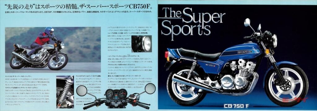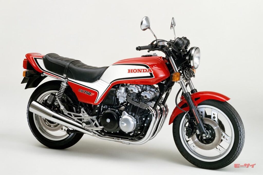 海外市場向けのCB900Fは1978年9月、国内向けのCB750Fは1979年6月に発売。新開発された空冷直4ツインカム4バルブエンジンは、当初クルーザーモデルのCB750Kに搭載されて1978年末に先行して国内発売。遅れて登場したCB750Fは、それよりも洗練されたヨーロピアンフォルムをまとい、フルアジャスタブルリヤサスペンション、ジュラルミン鍛造のセパハン、当時としては後退したステップ位置とアルミキャストのステップホルダーなど、走り屋を刺激する装備を採用。以後、街なかを走れば簡単にCB750Fを見かけるほどに国内で爆発的なセールスを記録し、1980年代前半の大排気量クラスをリードした。