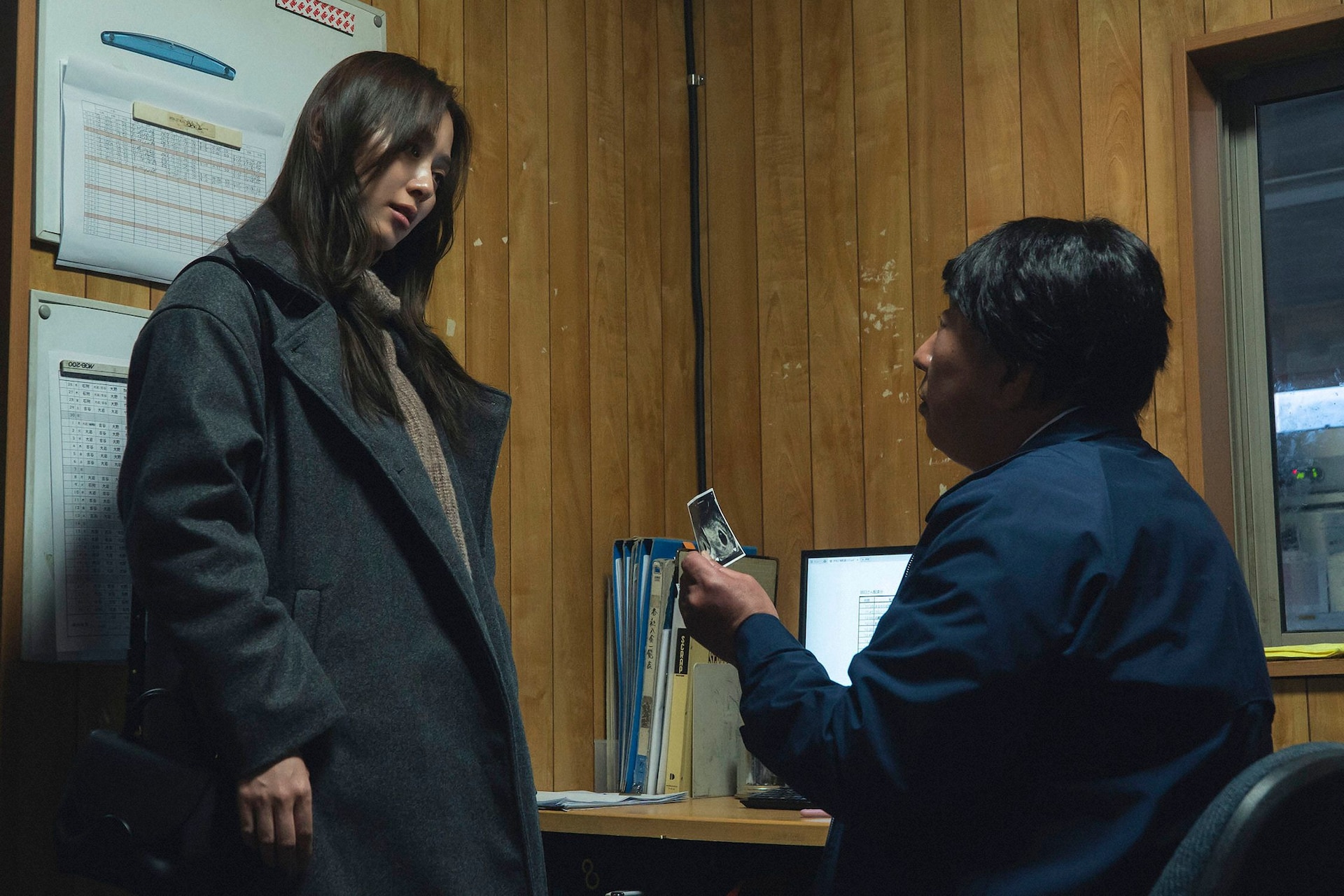 (C)「略奪奪婚」製作委員会クズ上司に証拠のエコー写真を見せる千春(内田理央)